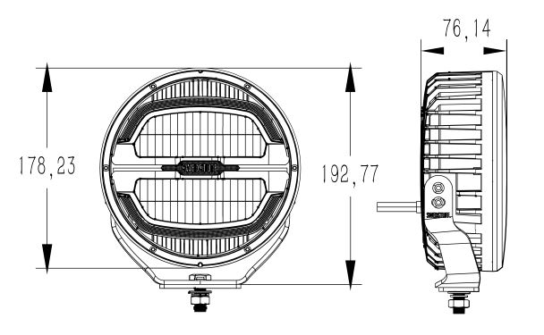 • Abmessungen: 178,23 mm x 178,23 mm x 76,14 mm (192,77 mm mit Halterung)