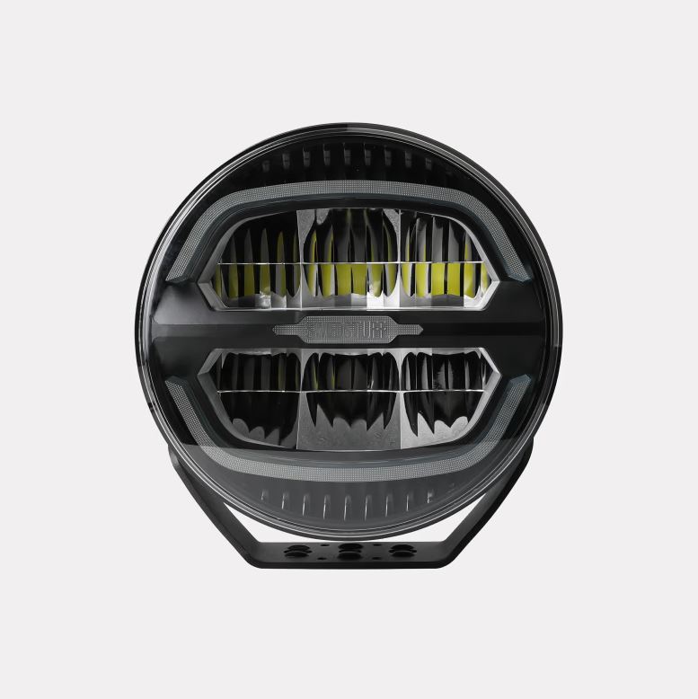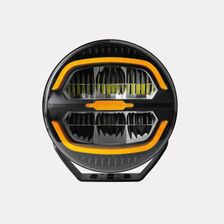 Hochleistungs-LED-Fahrlicht Das Fahrlicht NEW 9” ist für maximale Beleuchtung unter anspruchsvollen Fahrbedingungen ausgelegt. Dieses leistungsstarke LED-Fahrlicht ist mit einem robusten Fernlicht ausgestattet und verfügt über stilvolle weiße und bernsteinfarbene Positionslichter. Damit ist es die perfekte Wahl für Fahrzeuge, die hervorragende Sicht und modernes Design benötigen.