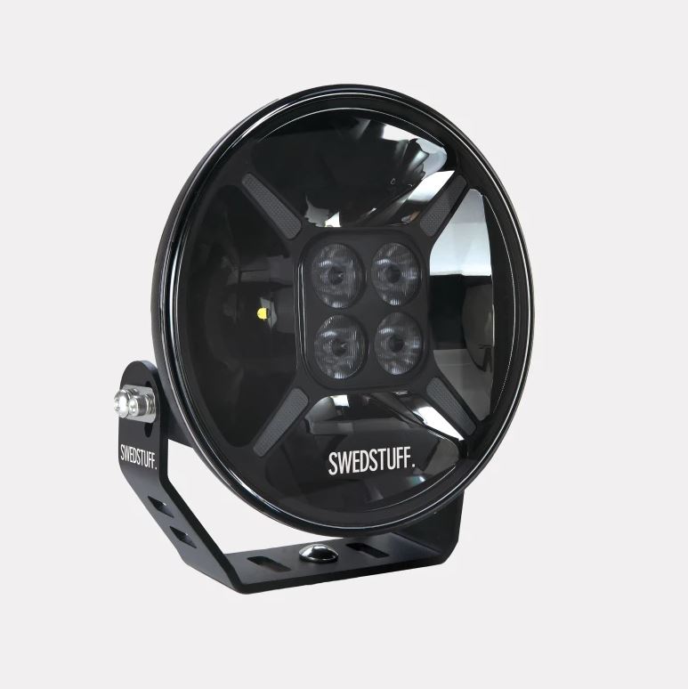 SWEDSTUFF LED-Zusatzscheinwerfer mit schwarzem Aluminiumgehäuse und stabiler Halterung.