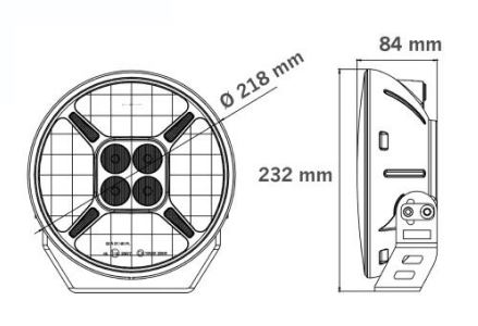 • Abmessungen: 84 mm Tiefe, 232 mm Höhe (inkl. Halterung), 218 mm Durchmesser