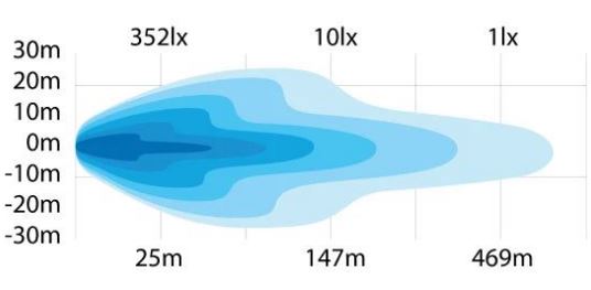 • 1 Lux bei 469 Metern