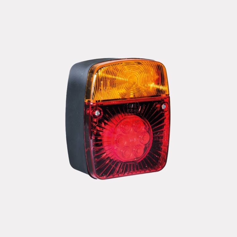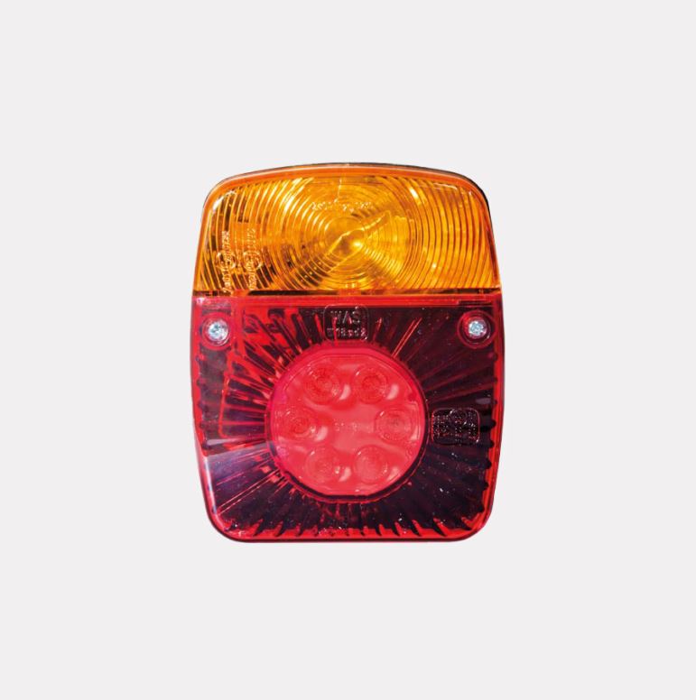Rotes und bernsteinfarbenes SWEDSTUFF LKW-Rücklicht aus Polycarbonat mit LEDs.