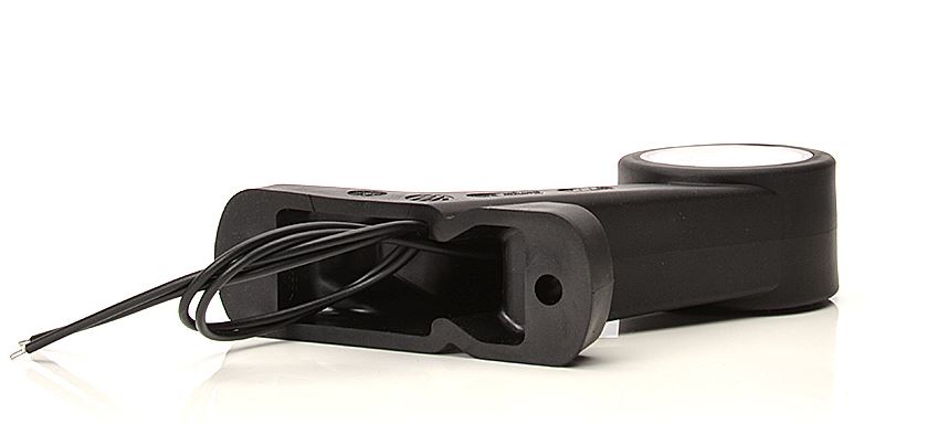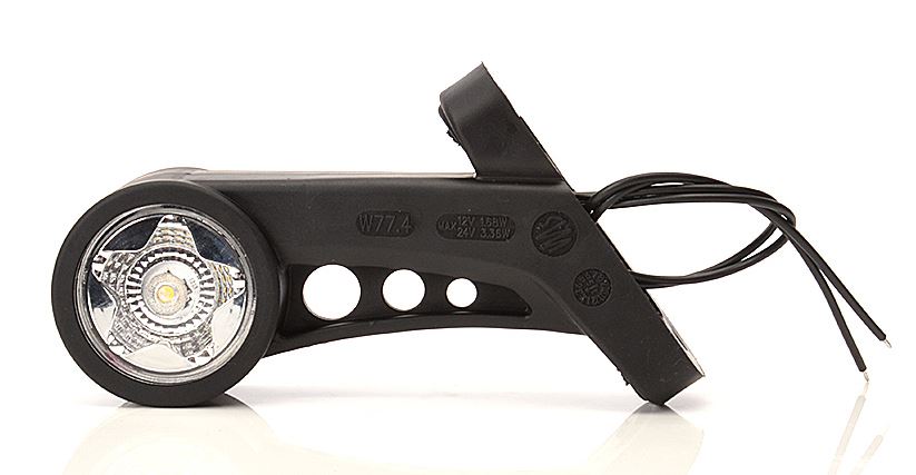Schwarze LED-Kombinationsleuchte mit weißem Hauptlicht und amberfarbener Seitenmarkierungsleuchte.