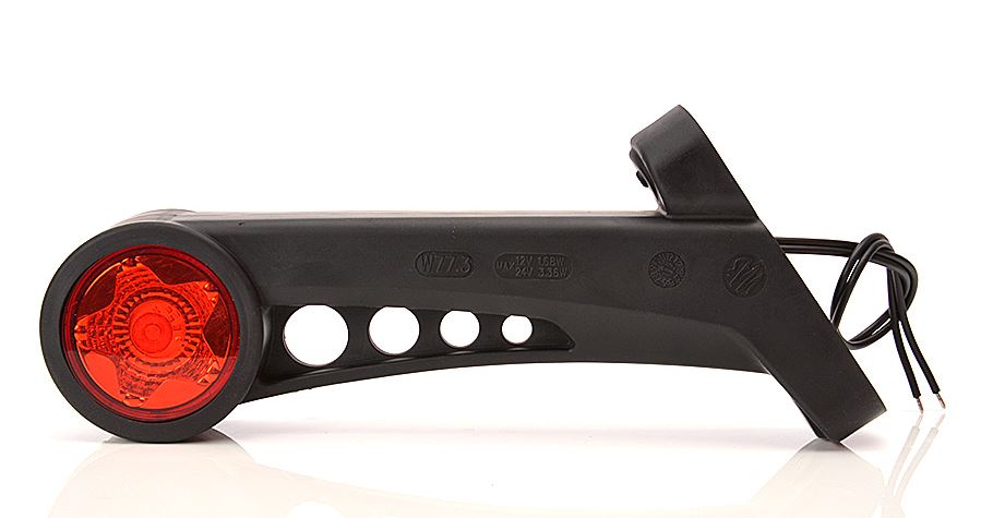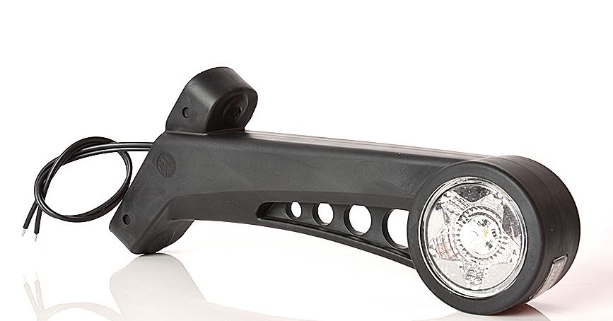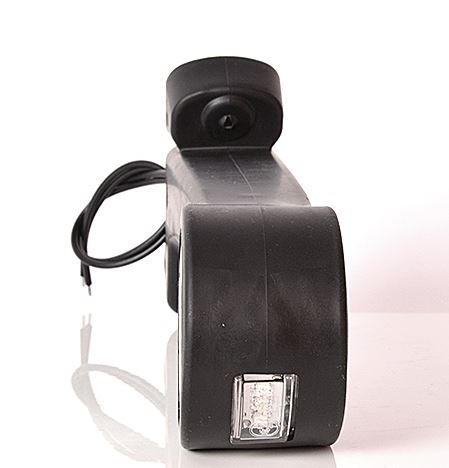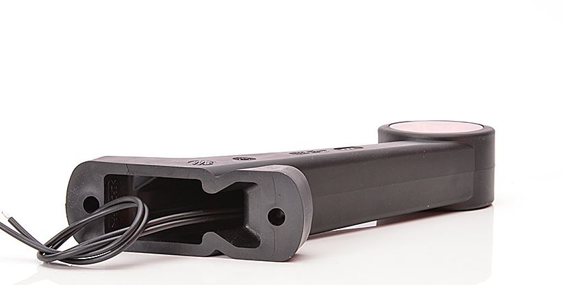Schwarzes LED-Pendel mit integrierter Seitenmarkierungsleuchte und Anschlusskabeln.