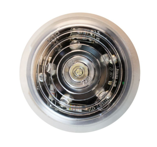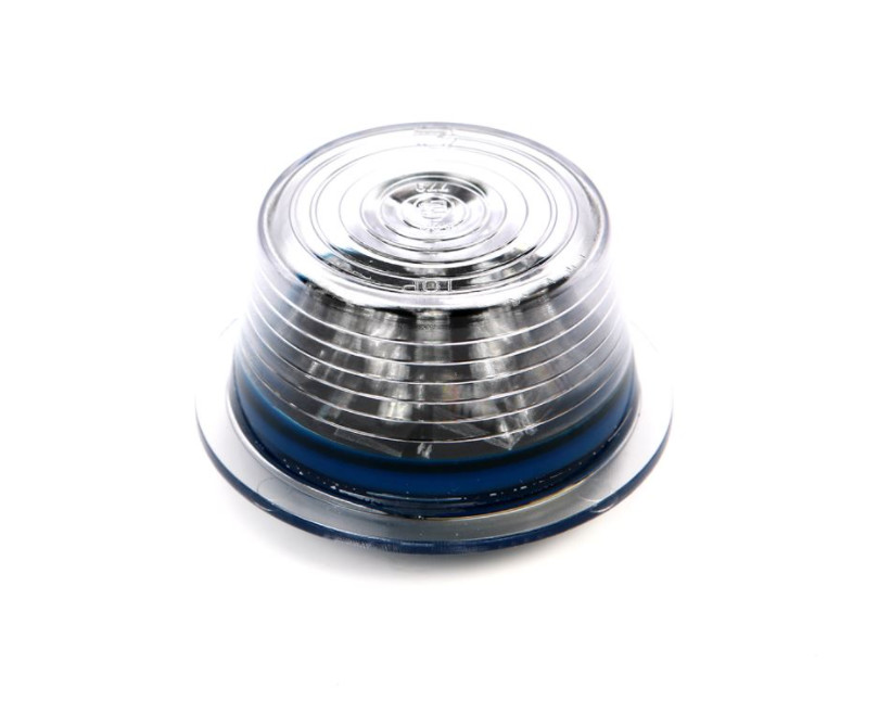 Klares, kuppelförmiges Gylle Ersatzglas mit blauem Ring und integrierter LED-Einheit.