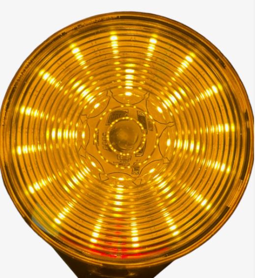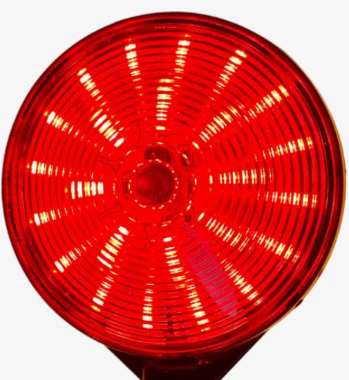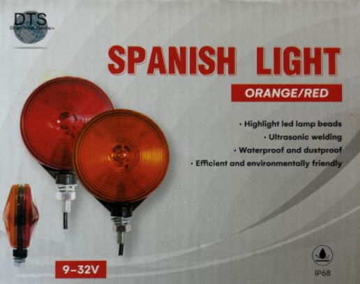 DTS Spiegelleuchte LED, rot und orange leuchtend, mit klarer Abdeckung.