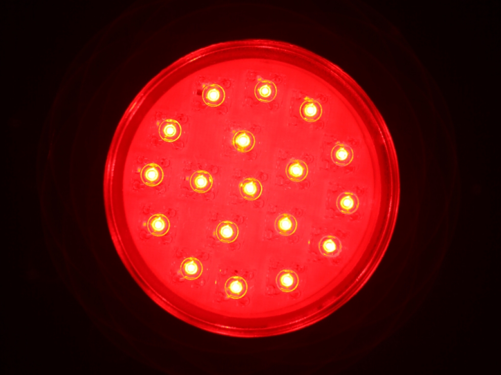 Rote LED-Innenraumlampe mit leuchtenden gelben LEDs.
