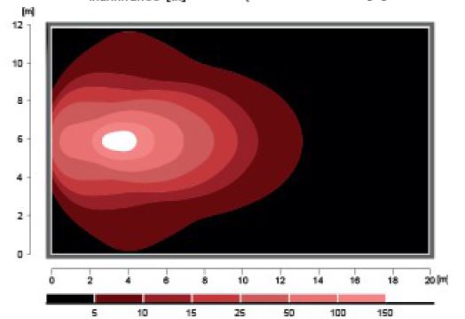 Lichtverteilungsdiagramm des LED Arbeitsscheinwerfers. Zeigt den Ausleuchtungsbereich mit farbcodierten Helligkeitsstufen.