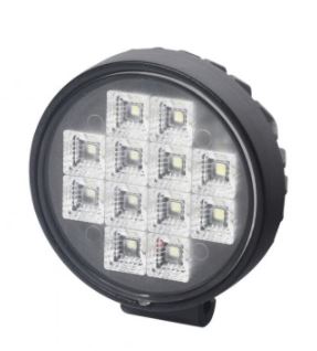 Runde schwarze LED Arbeitsleuchte mit mehreren quadratischen LED-Elementen im Aluminiumgehäuse.