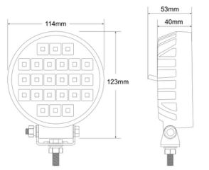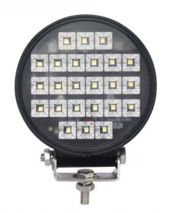 Runde schwarze LED Arbeitsleuchte aus Aluminium mit mehreren LEDs und silberner Montagehalterung.