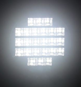 Helles, weißes Licht einer LED Arbeitsleuchte, bestehend aus mehreren leuchtenden LEDs.