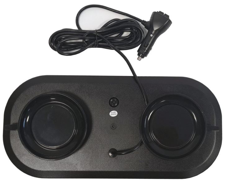 Schwarzer Warnbalken aus Kunststoff mit Magneten, Kabel und Zigarettenanzünderstecker.