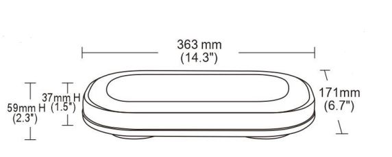 Technische Zeichnung des ovalen Warnbalken 363 mit Maßen 363x171x37mm.