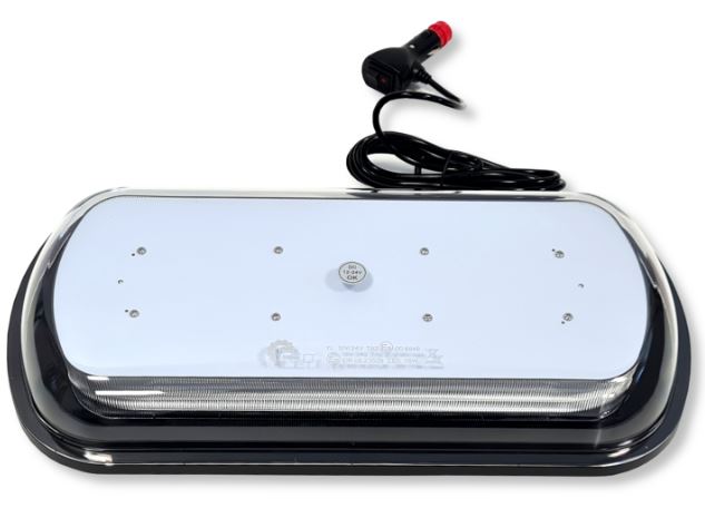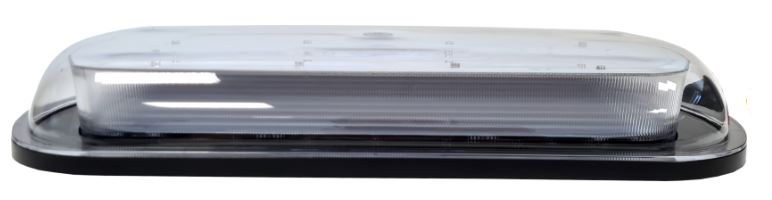 LED-Warnbalken mit klarer PC-Linse und schwarzem Gehäuse, magnetisch montierbar.
