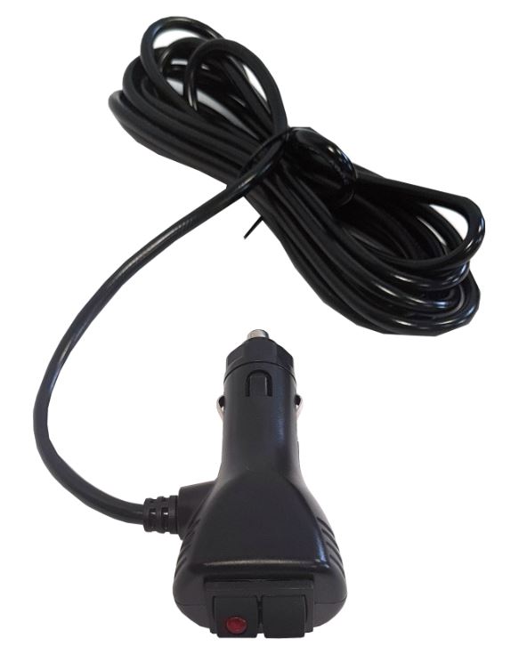 Schwarzer Zigarettenanzünderstecker mit Bedienschaltern und langem Kabel für Warnbalken.