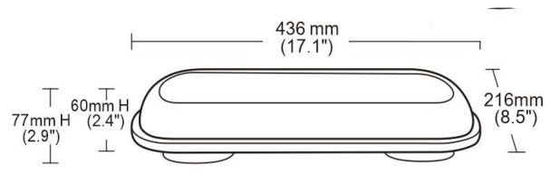 Maßzeichnung des Warnbalken 436. Zeigt die Abmessungen 436x216x60mm und die magnetischen Befestigungspunkte.