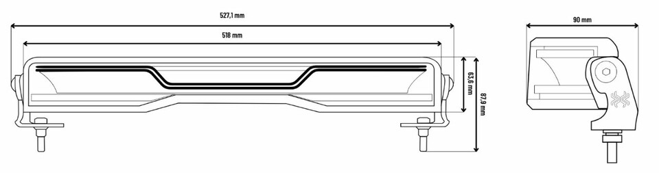 - Produktabmessungen: 527,1 x 87,9 x 90 mm