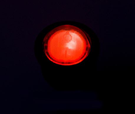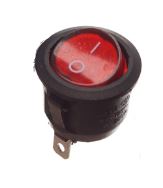 Beleuchteter runder Kippschalter mit rotem Kunststoffknopf und schwarzem Gehäuse.