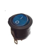 Runder Kippschalter mit blauem Kunststoffknopf und schwarzem Gehäuse. Zeigt die Symbole I und O.