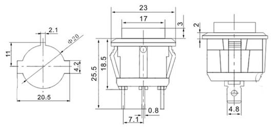 Der Schalter hat eine Einbauhöhe von 23,5mm.