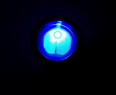 Kippschalter mit einem farbigen Kunststoffknopf, der aufleuchtet, wenn der Schalter eingeschaltet ist.