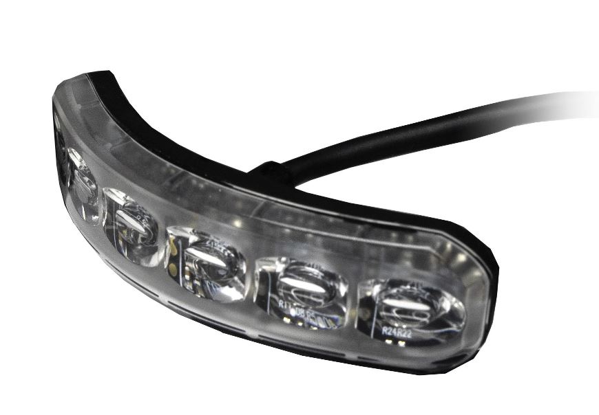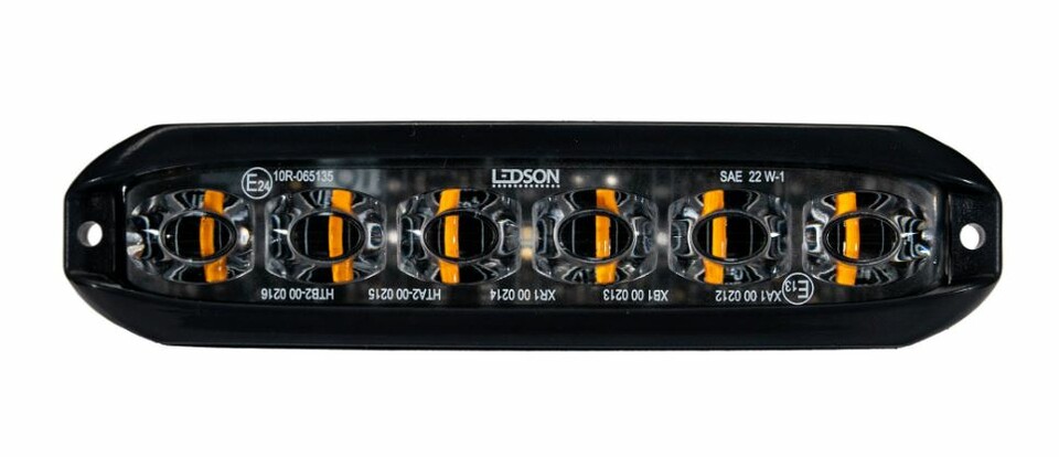 Die Ledson Nexus ist eine biegbare LED-Warnleuchte, die zur Montage auf gekrümmten Oberflächen bis zu 30° nach hinten gebogen werden kann, aber auch auf ebenen Oberflächen montiert werden kann. Das Warnlicht hat einen effektiven Schutz gegen Stöße und eine verbesserte Linse für eine längere Lebensdauer im Vergleich zu herkömmlichen Blinklichtern. Mit 3M-Klebeband montiert oder mit der mitgelieferten Blende verschraubt.