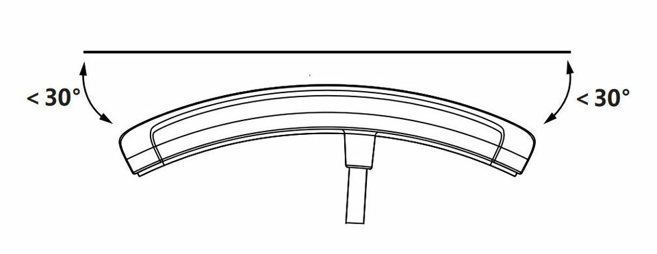 Schematische Darstellung der biegbaren Nexus LED-Warnleuchte, die ihre Krümmung bis 30 Grad zeigt.