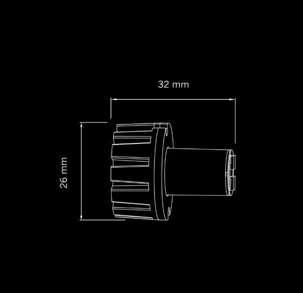 Technische Zeichnung des Strands Mini Blitzer LED, zeigt ein zylindrisches Bauteil mit Maßen 26 mm und 32 mm.